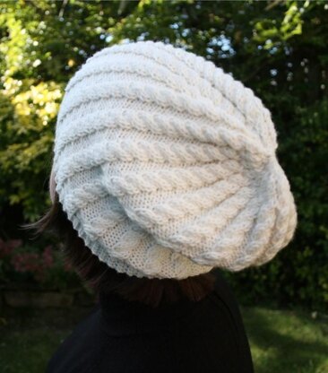 This hat is knit on slightly oversized needles to give a looser fabric with a relaxed drape and forms part of the Winter Twist Collection of accessories, which also includes a beanie hat, gloves and boot cuffs. The Winter Twist Collection is a series of accessories that can be worn alone or together and is perfect for wrapping up against autumn and winter chills.