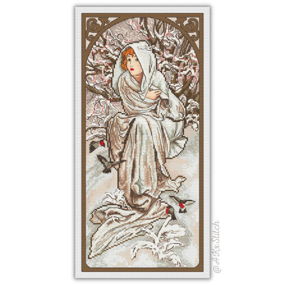 Winter Woman Counted Cross Stitch Pattern and PDF Digital Download. The design features a red hair woman in the snowy woods surrounded by robin birds in a fantasy fairytale style of art. Fun and easy to follow pattern with stunning results. Great handmade gift idea for a geeky friend or make your own room decor.Stitched on Aida 14ct: 17 x 37 cm (7 x 14 in)DMC Threads: 21 solid colours (1 blends)Used stitches: full cross stitch, half cross-stitch, backstitchSkill level: Intermediate / AdvancedStitch time: 35-45hCross stitch pattern in PDF, Instant Digital Download includes: 1) cover page with preview; 2) instructions, symbols key and shopping list (DMC thread colour numbers and estimates, as well as fabric options); 3) two black and white charts, with and without backstitch; 4) two colour charts, with and without backstitch; 5) single-page file for Pattern Keeper (available on request).Please note: This pattern is for personal use only - not for commercial use. You can't make copies of our charts to distribute (either as PDF or printed versions) but you can definitely sell your finished cross stitch work.