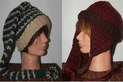Pattern includes directions for 3 sizes and 2 styles of a Winter Wonderland Fun Hat. Hat is also available with or without ear flaps and tie and includes average size mittens.