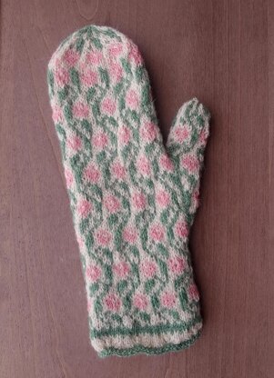 This is a pattern for a pair of mittens worked from the bottom up and in the round, using the stranded colourwork technique. You may work them in 2 colours or with 3 colours (there are charts for both for left and right hands).