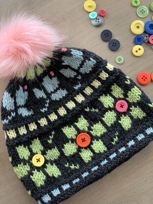 Some winters feel more like spring. This winter has been one of them for here in the Northeast. This hat seems appropriate for cool spring-like winter days. Warm, soft and spring-like in color and motif, it reminds us that spring is on it’s way and color is called for! Available to knit in 4 sizes and two color ways, each large floral border is slightly different based on the number of stitches in the hat. Some “after stitching” has been added to make the motifs in Hat One pop a bit. A single button is used in the center of each large motif instead in Hat Two. Cascade 220 Merino, a new amazing yarn, is used here. PLEASE NOTE, CASCADE 220 MERINO MAY NOT BE AVAILABLE IN ALL AREAS. CASCADE 220 or any yarn that meets gauge may be used.