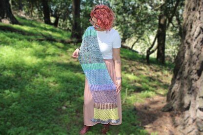 Yarn: Approx 130 yards/30grams each of 8 colors of fingering weight yarn. Shown in Forbidden Fiber Co. Fortitude - The Bridgerton mini set. Size: One size. 70 inch length, 12 inch width. Needles: US size 6/4mm 24 inch or longer circulars. Notions: Tapestry needle, spare needles. Gauge: 24 stitches by 36 rows is 4” in garter on US side 6/4mm needles. Gauge is not critical for this project.
