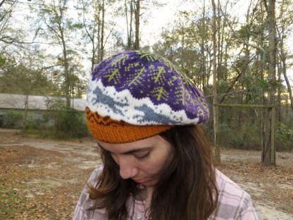 Inspired by Classic Fairy Tales, Once Upon a Time, Grimm and Twilight and Game of Thrones. Wolf in the Woods brings to mind snow filled winter nights, deep in the enchanted forest or beyond The Wall. This Tam is knit in the round using circular needles for the main part and then finishing up with double pointed needles. There are some long floats in this pattern so you will need to be familiar with how to carry your yarn behind using 2 colors.