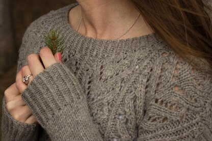 Wolf River is worked flat from the bottom up, beginning with the hem. The front and back are knit separately, but both are worked the same. After the neckline is shaped short rows are worked to shape the shoulders and then these stitches are placed on hold. When both the front and back pieces are completed, the shoulders are grafted together and the sweater is seamed at the sides. Stitches are picked up around the armholes and the sleeves are knit in the round. Finally, stitches of the neckline are picked up and the neckline is worked in the round.