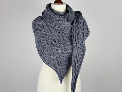 **Gauge:**15 stitches and 27 rows in 4 inches (10 cm) in garter stitch after blocking. Gauge is not crucial for this project, but changes might result in a smaller/larger shawl and different yardage requirement.