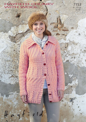 Woman’s Jacket in Hayfield Chunky with Wool - 7153 - Downloadable PDF is a Knitting pattern by Hayfield, available as a Downloadable PDF and includes instructions in English. Super fun to make, this pattern could be your next masterpiece!