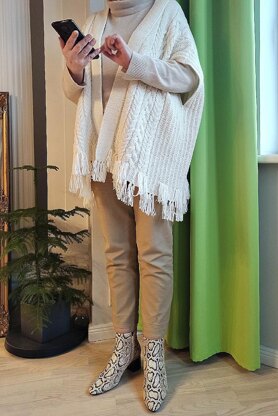 Cape size: Europe size 44-46; or XL-XXL (US). Add this Every Day knitted cape to your wardrobe staples. It is simple yet pleasing design makes it easy to mix and match. Wear over your casual outfits for an instant warmer. You can also don it over a cute dress for added style! In fact, this pattern is an ideal project for knitters with intermediate skills.