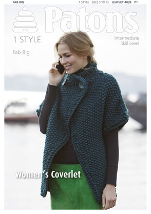 Women's Coverlet in Patons Fab Big - 4039 is a Knitting pattern by Patons, available as a Leaflet and includes instructions in English. Super fun to make, this pattern could be your next masterpiece!