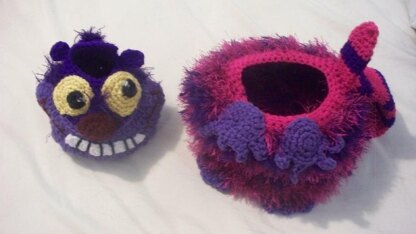 There never seems to be enough room for all the baby and toddler toys, blocks, cars and other small toys. Why not make baskets that are fun and functional at the same time? This whimsical set of two baskets can be filled with anything you need. They are sturdy yet soft and easy to tote around by toddlers. The tail makes a handle for easy carrying of the large bottom basket. Make the tail as long as you want; it can also be made as a regular basket handle. The smaller basket which is the head sits on top of the larger basket and even has a small pocket in the front behind the grin. The basket is removable just like the Cheshire cat head in the original movie! They were a lot of fun to make.