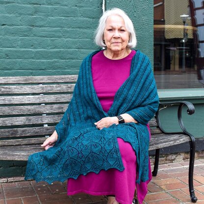 Wood Wide Web is provisionally cast on, then the first edging is worked from the center to the edge. The live stitches are picked back up and the body of the shawl is knit before finishing with the second edge. This ensures the two leafy edges are exact mirror images of each other, and no grafting is required!