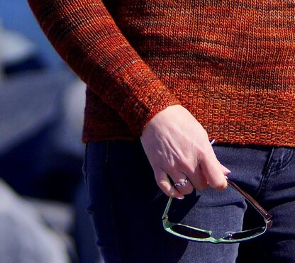 Wood Work features waist shaping and slip stitch patterning. Fronts and back are worked back and forth to armholes and then worked in the round in one piece. Sleeve stitches are picked up around armhole, sleeve cap is worked with short rows and remainder of sleeve is worked in the round.