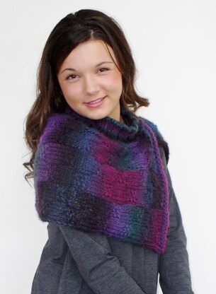 Skill Level: Intermediate Required Skills: reading a chart, picking up stitches, intarsia experience helpful Women's sizes XS, S (M, L, XL) Finished Measurements (at shoulders): 34 ¾, 40 (45 ¾, 51 ¼, 56 ¾)"/88, 101 (116, 130, 144)cm Gauge: 12 sts and 16 rows = 4"/10cm in stockinette stitch; 3 ¼"/8.25cm w x 2 ¾"/7.0cm h = one pattern stitch repeat. Gauge is not critical in this pattern, but a different gauge will affect yardage and size of finished garment. It may be necessary to unravel gauge swatch and re-use the yarn. Take time to check gauge. Materials:Yarn: Chunky weight gradient yarn; 300, 300 (350, 400, 400)yds/275, 275 (320, 370, 370)m. Model shown in size XS in Crystal Palace Chunky Mochi (80% Merino Wool, 20% Nylon; 49yds/45m/50g) in color #845 Drama: 6, 6 (7, 8, 8) Needles: US 10.5/6.5mm straight and 20"/51cm circular needles, or size needed to obtain gauge Crochet hook: size J/6.0mm Notions: Yarn needle, stitch marker, 3 r