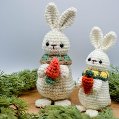 These curious rabbits join the woodland family, excited about exploring the neighborhood. This crochet pattern includes a woodland bunny and a simple carrot.