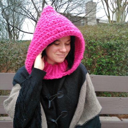 The Woodlands Faerie Hood is the crochet version of The Snuggly Love Bubble that I recently designed for Darn Good Yarn (check out my blog to find the link to the free pattern). It features an oversized hood and an attached cowl that you simply flip to the inside of the work to get the look in the photos. Made with super bulky weight yarn, this design works up super quick and is perfectly toasty!