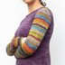 This sweater is all about color play! This sweater is perfect (and specifically designed) for self-striping and gradient yarns. It’s also great for pairing solids, tonals, and variegated skeins. There are so many yarn options. The specially modified, set-in sleeves are SEAMLESS and simple to knit. The modified sleeve cap allows for uninterrupted stripes on your sleeves. FUN SLEEVES! This sweater is knit from the bottom up, in the round. It includes waist shaping and instructions for adjusting the circumference of your sleeves. It has instructions for adjusting the fit for your body, so that you can increase/decrease the ease of your sweater. The Worsted Sock Arms also includes a rounded hemline.
