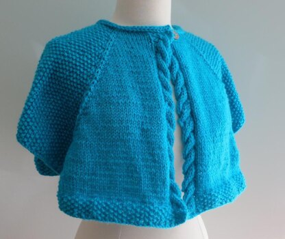 This cape is a perfect size for traveling , as a bed cape, and even for when you’re sitting in your favorite knitting chair. The Traveler’s Cape II is knitted using worsted weight yarn and is the sister pattern to The Traveler’s Cape. Design features are a mixture of moss and stockinette stitches, cable front edges, and an attached icord for the neck edging.