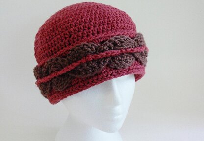 Easy Crochet Pattern Hat with Brim. Winter Hat in Sizes Baby, Toddler, Child, Teen, Ladies, Womens Large. This hat has a band interwoven around the fold up brim. Very feminine. Looks elegant in Ladies sizes but also super cute in Baby size. Much easier to make than it looks. Can be made in one evening.