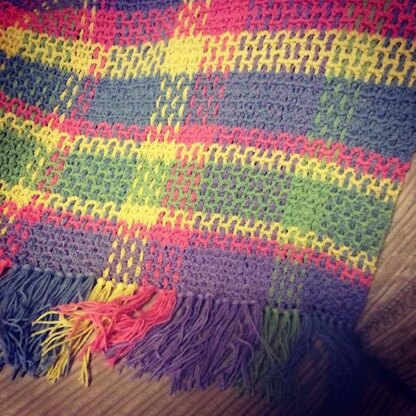 This beautifully woven crochet blanket is made from pure wool, 100% Bluefaced Leicester. The inspiration came from the pretty pastel coloured houses on Tenby harbour. There are 5 colours used in the pattern and it is based on a mesh and finished with chains in the various colours. The blanket is so soft and cuddly, ideal as a gift
