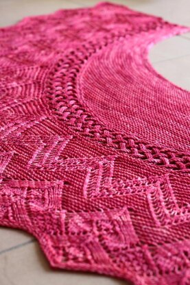 This pattern is both charted and contains full written instructions. Friends are everything and more to me. They are my chosen family and are woven into my life in such a special way. That's what this shawl is to me; my life is woven out of the love of all of my friends who share my passion of knitting. This design is the combined work of my great friend Maria and me, and I hope it shows what beauty can come out of such a fabulous friendship. Thank you, Maria Gössler (Lacechicken on ravelry) for being such a wonderful friend and working so hard to create this shawl with me and thank you to my Yarn Over Berlin friends for your help in testing it. Friends are like that, they are woven into our lives to make it beautiful. Woven Friends is knit from the bottom up with a hint of lace, continued with knitted fringes that are then woven together and knit into garter stitch short rows to make the crescent shape that lies wonderfully on your shoulders. Keeping the love of your friends w