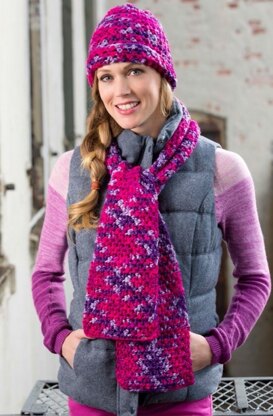Woven Stitch Hat & Scarf in Red Heart With Love Multis - LW3319