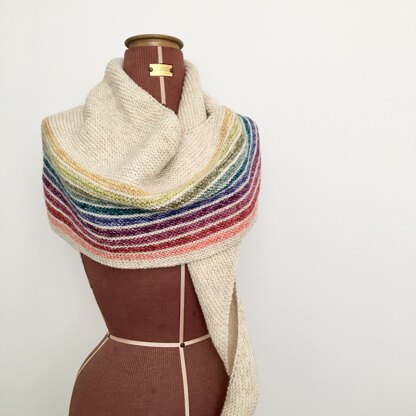 Wrap me in a Rainbow! This shawl is a celebration of colour; you may choose to use the given colours, or perhaps this is a perfect project to use up a rainbow of yarn minis leftover in your stash from previous makes! Each rainbow stripe uses no more than 6g of DK yarn so even the tiniest yarn leftovers in your stash might be enough!
