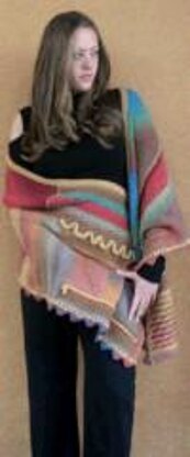 A modular sampler wrap that's over-the-top in color and texture — as much fun to make as it is to wear. Choose a worsted weight, self-striping yarn like Kureyon or Silk Garden (Noro), Paint Box (Knit One Crochet Too), Woolly Stripes (Nashua Handknits), or Autunno (Cascade Di.Vé), a harmonizing solid, and a few beads (optional) and you're ready to create a one-of-a-kind masterpiece.