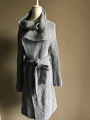 Wrap me up! is an airy wrapped coat with double moss stitches. Constructions is very easy, worked from top-down, worked flat. It needs little patience to finish it but I’m sure you will be happy with the outcome. Airy mohair yarn is recommended to lighten the body.