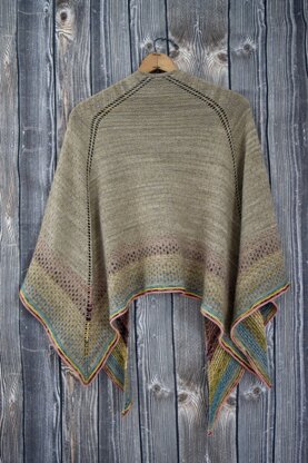 Wrapped in Color features a fleck stitch that is a four row repeat and adds just a bit of texture to the body of the shawl and then a wide mosaic border. The original sample uses a gradient mini skein kit for the mosaic section but is designed to use leftovers, random mini skeins, or a kit you have in stash. The main body color works best as a tonal or solid to really show off that fleck stitch. This large is the perfect meditative knit when you just need to keep your fingers moving.