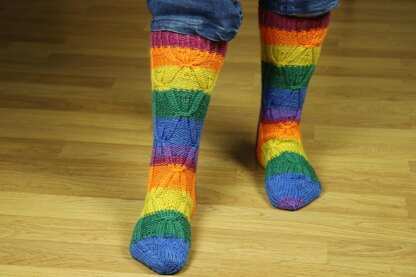 Wrap your feet in a beautiful rainbow of awesomeness! DK weight makes these a quick knit and with eight sizes you’re bound to find one perfect for you! Use your favorite method for knitting in the round and follow your favorite instructions - charted or written out.