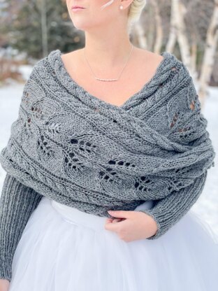 A scarf that doubles as a wrap? That triples as a sweater? Yup. Count me in. The Wrapped Up in Cables Sweater Scarf is a cozy scarf with sleeves that is adorned with a leaf-like lace and surrounding cables, making it perfect for a winter wedding. This pattern is written in 3 sizes: A (B, C). Size A fits bust sizes 28-38”, B fits bust sizes 40-50”, and C fits bust sizes 52-62”