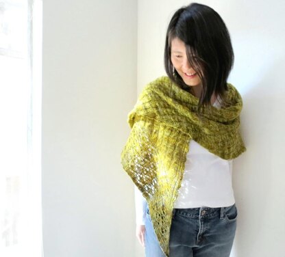 An asymmetrical shawl worked sideways from one end to the other.