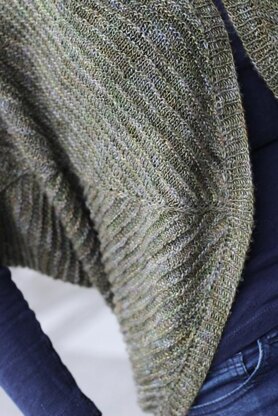 The cardi is worked on the bias, with no long cast on or bind off - smart shaping ensures proper fit. That’s right - no cast on or bind off! No fiddling with gazillion stitches! The fabric uses a simple garter ridges to highlight this new and absolutely unique seamless construction.