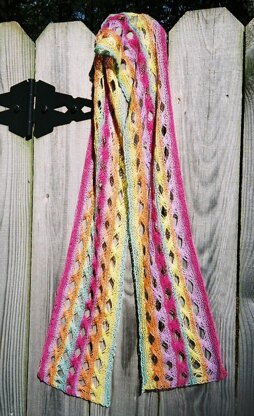 This colorful scarf is a fun and lightweight accessory for the warm months of the year! Whether you need a short or long scarf, this pattern gives you instructions to make it the length you want it to be. Short rows keep the long drop-stitch lengths from bunching on the ends of the scarf for a true rectangle. Perfect for those yarns with long color repeats! Handspinners can delight in using their lovely lengths of colorful singles or Chain-Plied yarns.