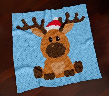 🦌🛷 C2C X-Mas Reindeer Blue Blanket C2C Crochet Pattern