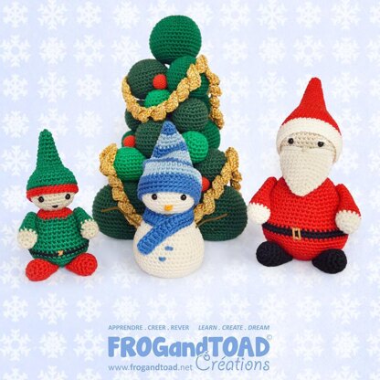 XMAS Scene - Christmas Tree Santa Clause Snowman & Elf Gnome - Amigurumi Crochet - FROGandTOAD Créations