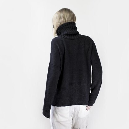 yana is worked seamlessly from the top down. Knitting starts from a cast-on at the shoulders. Short rows are used to shape the shoulders, then each part is joined to work the back down to the underarm. Stitches are then picked up at the shoulders to work each front. The work is then joined at the underarm and worked in the round to the split hem with set in pockets. Sleeve stitches are picked up around each armhole and sleeves are worked from the top down in the round to the cuffs with 1x1 Rib panels. The cowl neck is worked last.