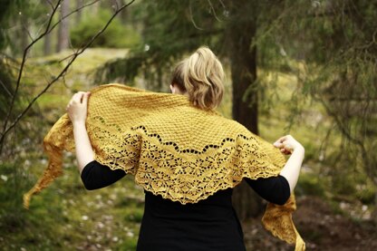 Yellow Fields is a crescent-shaped lace patterened shawl. Instructions are charted. Yellow Fields requires 400-600 meters of blockable fingering weight yarn and is easily adaptable in size.