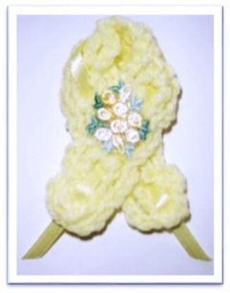 Make in color desired according to your event. you will need #4 yarn in color desired, an applique Example: flower-heart or star.