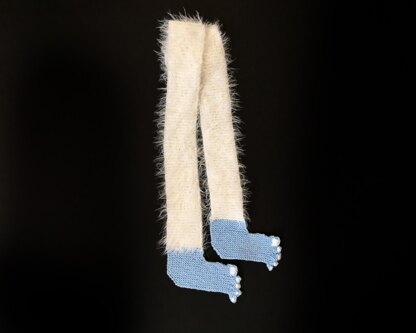 The Yeti Feet Silly Scarf is a fun winter scarf that uses eyelash or textured yarns for the legs and includes Glow-in-the Dark Toenails.