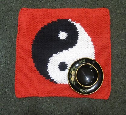 Knitting the Tai Chi symbol - Yin-Yang - works well for stress relief. Red Yin-Yang Placemat is not difficult to knit. The size of this placemat is 10" x 10".