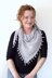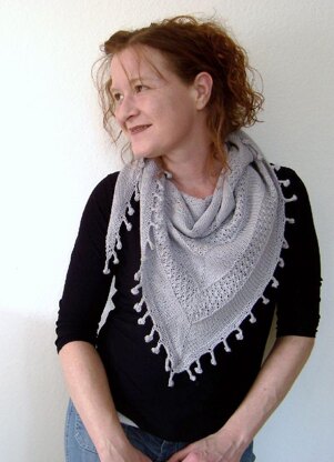Fertige Maße: 140 cm, gemessen von Seite zu Seite und 54 cm tief gemessen am tiefsten Punkt in der Mitte des Tuchs, nach dem Spannen. Material: Garn: Cable Gitti von Fischer Wolle (50% Schurwolle 50% Acryl 50 g/185 m), auf dem Foto gezeigt mit der Farbe "Silber" 140 g/520 m. Nadeln: Rundstricknadel Nr. 4 mm. Sonstiges: 4 Maschenmarkierer, Wollnähnadel und eventuell einen Reihenzähler Maschenprobe: 22 Maschen und 36 Reihen = 10x10 cm, in glatt rechts, nach dem Spannen. Die Maschenprobe ist nicht wichtig bei diesem Projekt. Eine andere Maschenprobe kann allerdings ein größeres oder ein kleineres Tuch ergeben und der Garnverbrauch ändert sich.