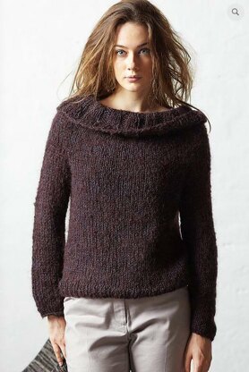 The body is worked in the round to the armholes, where you divide for front and back and begin raglan shaping. Sleeves are worked flat, also with the beginnings of raglan shaping. Then Unite the pieces and finish the yoke in the round with regularly-spaced decreases. Neck is cast off, then picked up again and finished in ribbing. Pop the lush collar up for more of a polo/turtleneck effect, or turn it down for a portrait collar look (as shown in main photo).