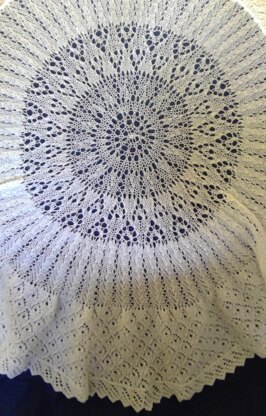 This pattern, whilst it needs patience, has been designed so that it is easy to see the pattern working out as you knit the rounds. Every other row is a knit row and there is no change of round end. Once the first couple of rounds have been worked, which I always find fiddly, the pattern is quite easy. Plenty of help online for a circular cast-on.I would recommend using a contrasting marker so that you can easily see the round end and also a lifeline every so often just in case! The diameter can be adjusted to be smaller if required. The border is attached as it is knitted so there is little sewing up