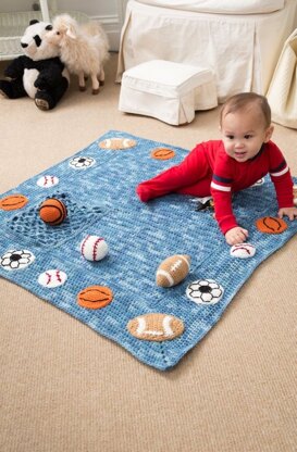 Young Athlete Blanket and Rattles in Red Heart Super Saver Economy Solids - LW4224