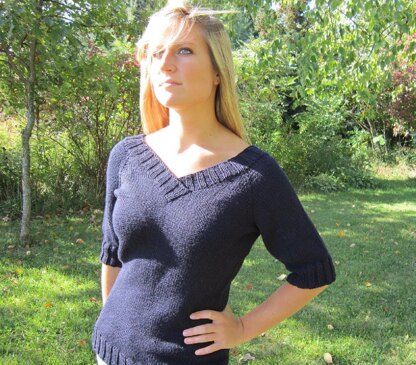 This simple raglan V-neck is knit from the top down and it's reversible.