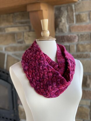 Infinity cowl knit flat in garter stitch and a squishy basketweave pattern. Perfect for any knitting level. Knit in bulky weight yarn.