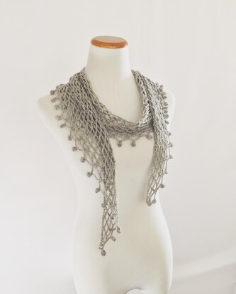 The You've Got a Friend scarf is crocheted lengthwise, with tapered ends and has a fun crocheted pompom edging. The length enables you to wrap and tie it any way you want. The combination of the open stitches and fingering weight yarn produces a very lightweight scarf.