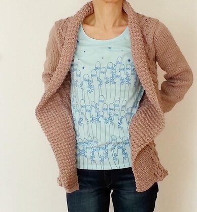 Yuriji snuggles you like your favorite blanket. The shawl collar that wraps around your neck and the long body will give you pleasant warmth in cool seasons. The simple yet eye-catching stitch on the body is fun to knit and keep you focused.