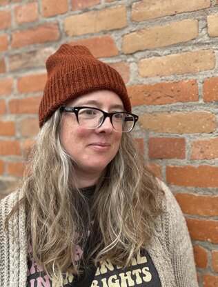 This hat is designed to have a folded brim for extra warmth around your ears. It fits a wide range of head sizes because of the stretchy nature of the ribbed fabric.