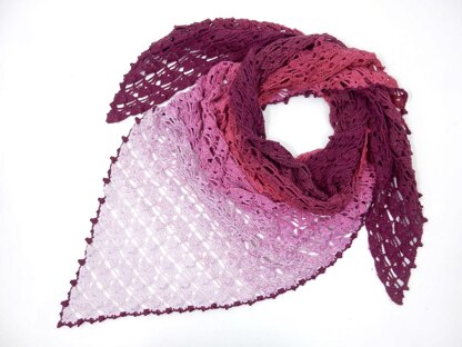 This PDF crochet pattern is for a crocheted shawl in a symmetrical triangle shape and can be adjusted to any size.